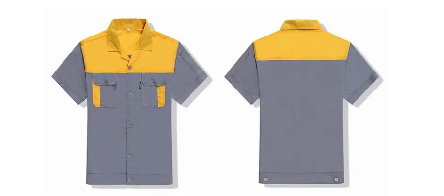 夏季短袖工裝時(shí)尚款系列此款工作服面料采用工裝面料品牌廠家四川意龍集團(tuán),面料紋路清晰,夏天貼身不刺激皮膚,保證了衣服不起球,不掉色,不縮水。縫紉線采用多股絲光錢,衣服更結(jié)實(shí),更彰顯品質(zhì)。